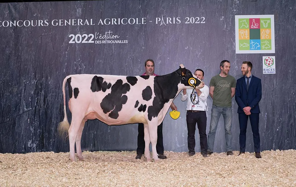 Mais parmi toutes ces princesses, l’une d’elle avait quelque chose en plus : Kansascity du Tombuy (Atwood X Jasper Wil), appartenant à la famille Decheppe du Gaec du Tombuy (55), déjà désignée Championne Adulte termine Grande reine de Paris 2022 . « Cette vache en 4e lactation est magnifique. J’en suis fan. Elle a tout ce qu’il faut : beaucoup de puissance, de solidité et de caractère laitier. Dans le ring, elle se déplace avec tellement d’élégance », détaillait, émerveillé, Yoann Henrion.