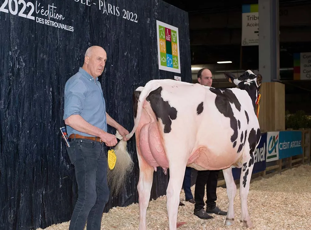 Comme Réserve de cette Grande championne, le juge s’est penché sur sa Championne Jeune sacrée également meilleur pis de sa catégorie : Wilt Bailay (Godewind X Jacot Red) appartenant au Gaec Wilt (67). « J’ai adoré cet animal plein d’avenir, remarquable dans sa longueur et combinant solidité et style. Exceptionnel au niveau des fonctionnels avec notamment un système mammaire parfaitement bien ancré dans son corps et un placement de trayons à souligner. » Une autre vache adulte, en 7e veau, a fait des étincelles : Gourmande (Jayz X Matson), à la copropriété Gaec Du Tombuy – Antonin et Adrien Dailly (55), née à l’EARL de la Pommeraie (89) qui a fait une belle moisson avec les Prix d’honneur de Réserve Championne et de Meilleure mamelle en catégorie Adulte. Surtout, cet animal était issu de la classe des 7e lactation et plus, une première à Paris, où toutes « ces vaches exceptionnelles de longévité, de conservation et de productivité » ont offert un le spectacle d’un défilé incroyable.