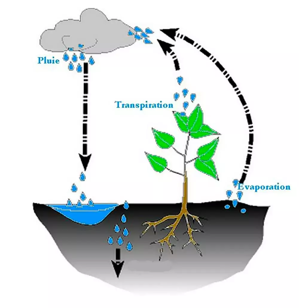 Un des principaux facteurs qui conditionnent l’évapotranspiration est la chaleur du sol. Le stress hydrique (lié à la quantité d’eau dans le sol) intervient aussi pour une large part dans le phénomène : car lorsque l’eau se fait plus rare dans le sol, les stomates se referment et la transpiration ralentit. Les plantes économisent l’eau et poussent moins.