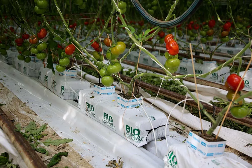 Sur ses 21 000 m2 de culture de tomates, Loïc Conan utilise des substrats Biogrow Duo à base de fibres de coco. Des produits naturels, recyclables et surtout adaptés à sa situation hydrique.