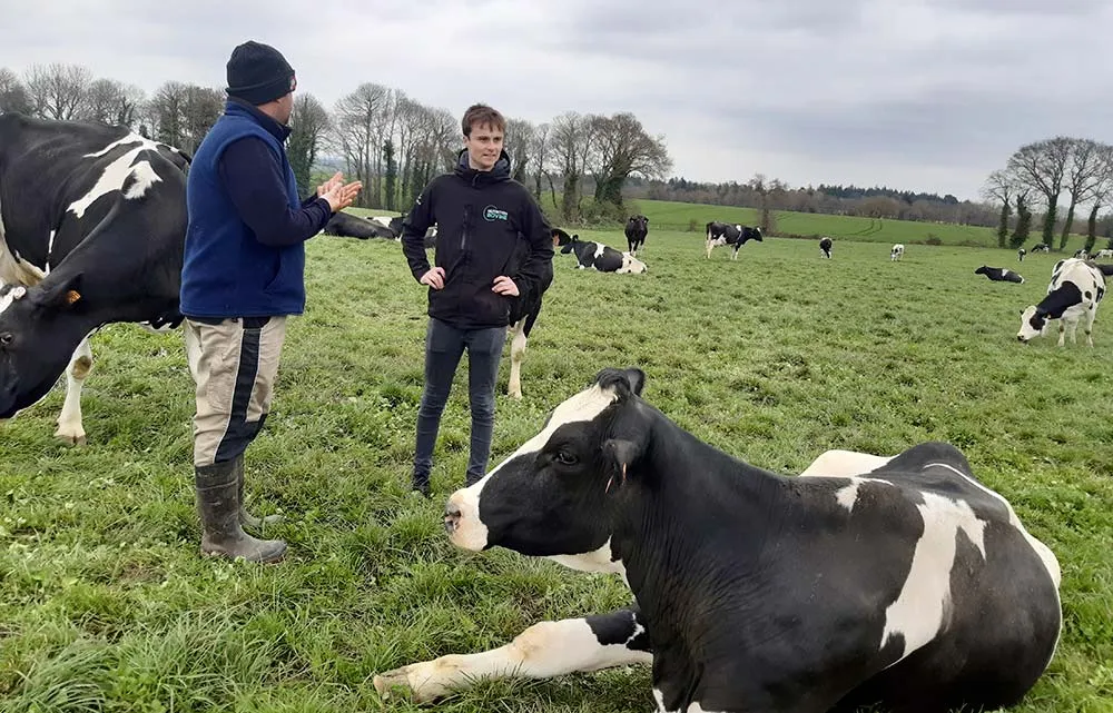 Au Gaec de la Croix, l’objectif est d’avoir un vêlage à 24 mois, ils s’en rapprochent puisqu’ils sont passés d’un âge au vêlage de 27 mois à 25 mois. « J’investis de 0 à 6 mois sur la ration de mes génisses pour assurer le bon développement de leur rumen pour qu’ensuite elles valorisent bien les fourrages », précise l’éleveur, Gaëtan Rochefort. Pour l’accompagner, Stéphane Le Boulanger, technicien Nutrition bovine Eureden, a proposé l’aliment Genixo Mel, le mash performance d’Eureden. Il est distribué en 2 repas / jour pour un apport équilibré sur la journée. « Avec cet aliment je n’ai pas de surconsommation et les génisses ingèrent toujours suffisamment de fibres », témoigne l’éleveur. Le programme alimentaire est facile, il faut distribuer 4 kg max à 6 mois. Cet aliment, parfaitement équilibré en protéines et énergie, permet d’assurer une belle croissance et le développement squelettique. Depuis que les éleveurs distribuent le Genixo Mel, ils sont passés de 750 g/j de GMQ à près de 900 g/j de GMQ aujourd’hui.