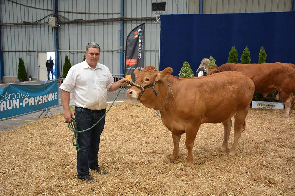Le concours Limousin a regroupé sur le ring de Saint-Brieuc 20 animaux venant de 5 élevages costarmoricains. Le juge Pierre-Yves Jézéquel, éleveur limousin dans le Finistère, rappelle ce qu’il recherche en début de journée : « Je veux des animaux fins d’os gage de rentabilité, avec un bon bassin pour des vêlages faciles. J’accorde beaucoup d’importance aux aplombs car ces animaux destinés à la reproduction vont faire plusieurs kilomètres chaque jour. » Il a désigné Rose appartenant au Gaec Rolland, de Lannion (22), meilleur animal du concours. « Cette génisse de la catégorie 16 à 24 mois représente vraiment les standards de la race. C’est un animal long avec bassin très ouvert, le meilleur du concours. »