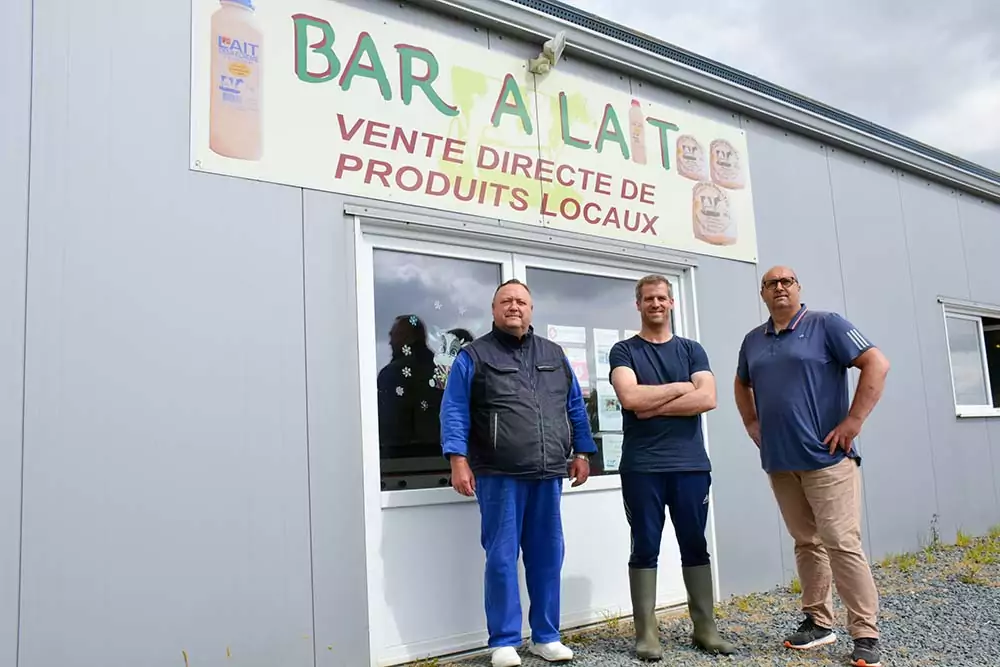« L’idée est de susciter la curiosité des gens et de les inciter à s’arrêter. Tout cela pour recréer du lien entre le producteur et le consommateur. Ici on peut boire un verre de lait nature ou aromatisé avec différents parfums, un milk-shake, un thé, un café, un diabolo… La grande baie vitrée qui donne sur le laboratoire permet d’engager la discussion sur la fabrication de nos produits tout en faisant le lien avec l’élevage et l’agriculture. Les visiteurs peuvent aussi venir visiter la ferme ou encore assister à la traite des vaches », raconte Alain Guichaoua un des 3 associés du Gaec avec son frère Jean-René et Michel Le Hénaff.