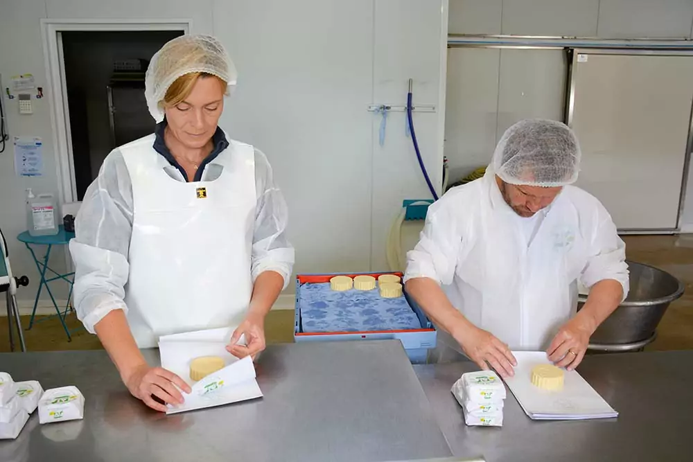 Les grandes et moyennes surfaces du Finistère représentent le gros de la clientèle du Gaec de Kervannes. Le beurre cru étant le produit phare de l’exploitation. « Notre lait est écrémé à chaud chaque jour directement pendant la traite des vaches. La crème passe ensuite en chambre froide avant d’être barattée, malaxée, salée puis le beurre est marqué du logo de la ferme avant d’être emballé manuellement », décrit Alain. Les produits commercialisés sont donc : le beurre, le lait cru, le lait entier et demi-écrémé pasteurisé.