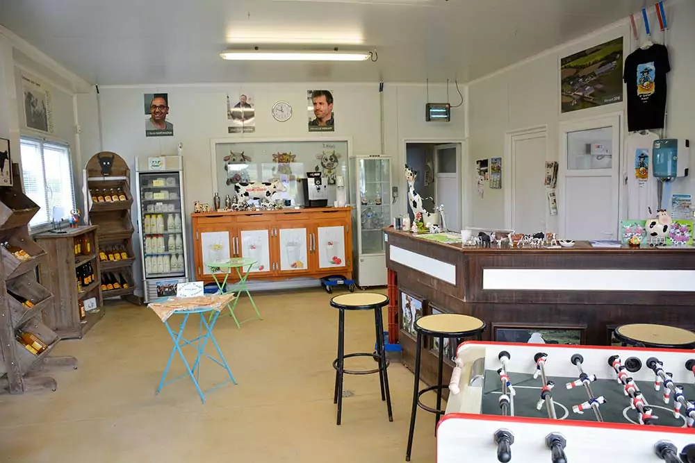 Le Gaec de Kervannes à Plonéour-Lanvern (29) est situé juste au bord de la départementale qui relie Pouldreuzic à Pont-l’Abbé. Cette route très fréquentée l’est encore plus en période estivale avec le flot de touristes qui viennent découvrir la côte du Finistère-Sud et ses magnifiques plages. Il n’en fallait pas plus pour faire naître une idée dans la tête des associés du Gaec qui s’est concrétisée par l’ouverture d’un bar à lait sur la ferme en 2015. La construction du nouveau laboratoire de transformation était le moment idéal pour créer ce bar à lait dans le prolongement. On y retrouve un comptoir, des tables, un baby-foot mais aussi des vitrines réfrigérées avec les produits laitiers de la ferme et d’autres produits du secteur : farine, biscuits, cidre, jus de pomme, miel…