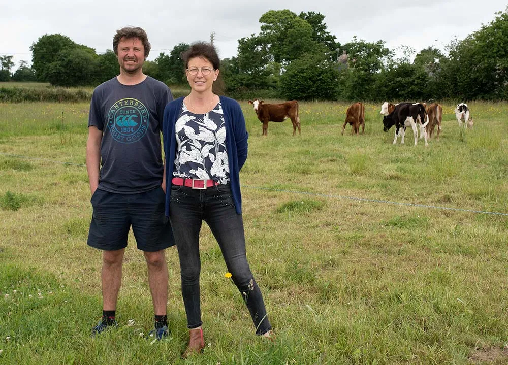Installés en 2008 à Pluzunet, Christine Le Gall et Nicolas Roverc’h ont évolué peu à peu vers un système herbager. Sur 60 ha de SAU, les 10 ha de céréales et 13 ha maïs du départ ont été réduits à 3,5 ha d’orge et 5,5 ha de maïs aujourd’hui. Le reste est en prairie dont 45 ha accessibles au pâturage (paddocks pour 3 ou 4 jours avec fil avant, suivi draconien de la pousse avec planning de pâturage). Tous les ans, l’hiver, Nicolas Roverc’h réalise des chantiers pour entretenir les haies et talus de l’exploitation et produire du bois bûche. « Longtemps, j’ai fait d’énormes feux avec les branches. Cela faisait un sacré volume », se rappelle l’éleveur. En visitant le Salon aux champs des Cuma à Sévignac en 2019, la démonstration de la machine de la Cuma Armor Bûches a été un déclic.