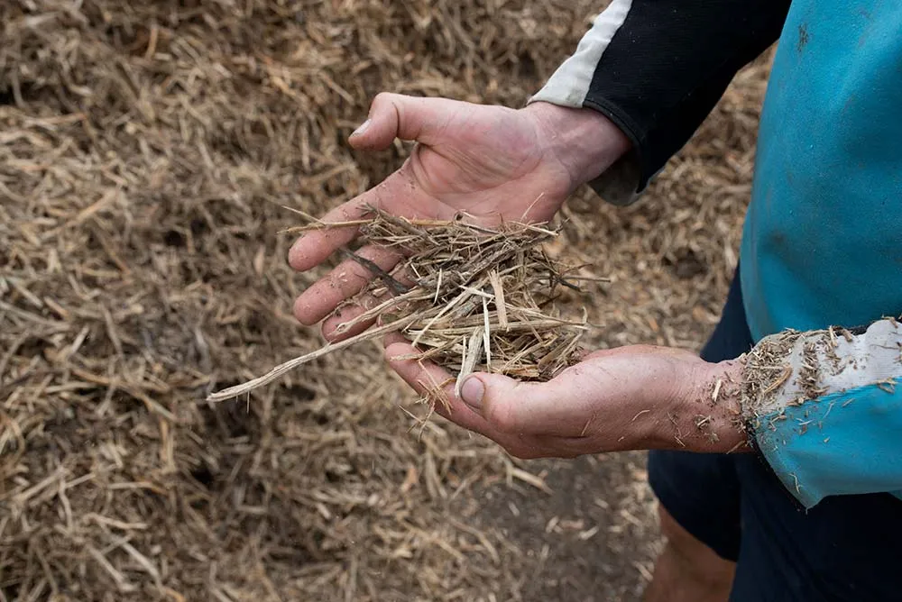 « Cette nouvelle litière ne chauffe pas, apprécie Nicolas Roverc’h. D’un point de vue sanitaire, nous notons un impact positif sur le nombre de mammites et la santé des pattes. ». Après deux mois sous les animaux, un curage intervient. « J’apprécie le produit obtenu. C’est presque du terreau, sans odeur, qui une fois mis en tas se couvre de champignons. Je l’apporte ensuite sur prairies à l’épandeur. J’ai l’impression que l’herbe crame moins en période chaude grâce à l’apport de ce produit ».