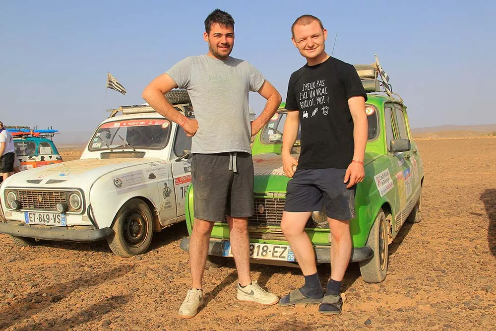Une dernière étape d’anthologie de 48 heures en autonomie, reliant le désert de Merzouga à Marrakech en passant par les points de contrôle obligatoires de Tazarine, de Ouarzazate et du col du Tichka, culminant à 2 260 mètres d’altitude, a marqué les deux Morbihannais. Les soirées festives, avec les autres participants, pour la plupart étudiants, et les nuits en bivouac dans le désert marocain, ont laissé de bons souvenirs. Cuisine typique marocaine, musique, feux de camp. Et parfois, passage par le pôle « méca » et mains dans le cambouis ! Le tout, sous les étoiles, au milieu de nulle part. La solidarité entre participants est la règle. « Certains partent un peu la fleur au fusil, sans aucune compétence en mécanique. Nous en avons aidé quelques-uns sur le bord des pistes avant l’arrivée du service de dépannage ».