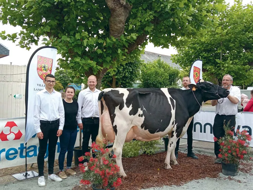 Stéphane Riou a continué le travail de sélection entrepris par ses parents Lucien et Marie-Renée. Partenaire Gènes Diffusion depuis une dizaine d’années, la ferme produit des animaux d’exception, comme Piwi ETL, ancien numéro 1 français. La génétique fait partie des meubles de la famille Riou, ferme laitière de Loc-Éguiner (29). « Déjà, dès 1980, mon père Lucien, passionné de génétique, avait commencé à réaliser de la transplantation embryonnaire », se rappelle Stéphane Riou, qui a repris le flambeau. Éleveur inséminateur dès 1995, il réalise ses échographies à partir de 2017. Depuis l’arrivée de la génomique, l’éleveur est partenaire Gènes Diffusion dans le cadre du schéma de sélection. « J’ai 4 mâles actuellement en activité chez Gènes Diffusion, dont un ancien numéro 1 français, Piwi ETL (Adlon P x Archer P), taureau à 220 d’Isu. La souche de ce taureau provient d’animaux achetés dans les années 70 ». La mère de ce mâle, Nana ETL, a été nominée dans Holstein International, comme vache française de l’année possédant le gène sans cornes. Les accouplements sont raisonnés « par rapport à ce dont les éleveurs ont besoin : matière grasse et protéique, de bons membres, de la reproduction, ainsi que de la santé mamelle, mais sans excès car cela peut pénaliser la vitesse de traite et une longueur de trayon optimum ». Un frère de ce taureau d’exception, Pop ETL PP, est actuellement N°3 français des homozygotes possédant le gène sans cornes. Ce critère est devenu pour l’éleveur un travail central, ¼ de son troupeau possède ce caractère héréditaire. « Dans un futur proche, je pense que les centres d’insémination ne prendront plus que des animaux possédant ce gène ». « La génétique me prend un bon quart de mon temps » 10 à 15 collectes d’embryons sont réalisées chaque année pour être utilisés sur le troupeau…