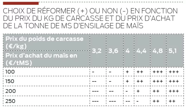La cellule sécheresse de la Chambre d’agriculture a calculé quand il était opportun d’acheter du fourrage ou au contraire de réformer des animaux, suivant le prix de la réforme ou de la tonne de MS de maïs ensilage.