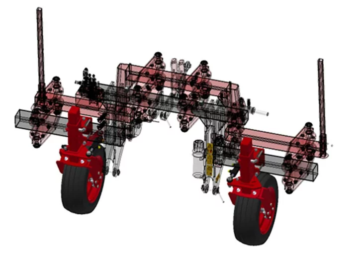 Les bineuses EC-Weeder embarquent un système de correction automatique des pentes permettant de biner dans des conditions vallonnées sans dérive vers le bas.