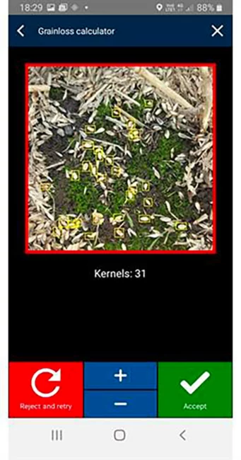 À partir d’une simple photo de l’arrière de la moissonneuse-batteuse, l’application Smartphone Grain Cam calcule automatiquement le niveau de perte de grains de la machine.