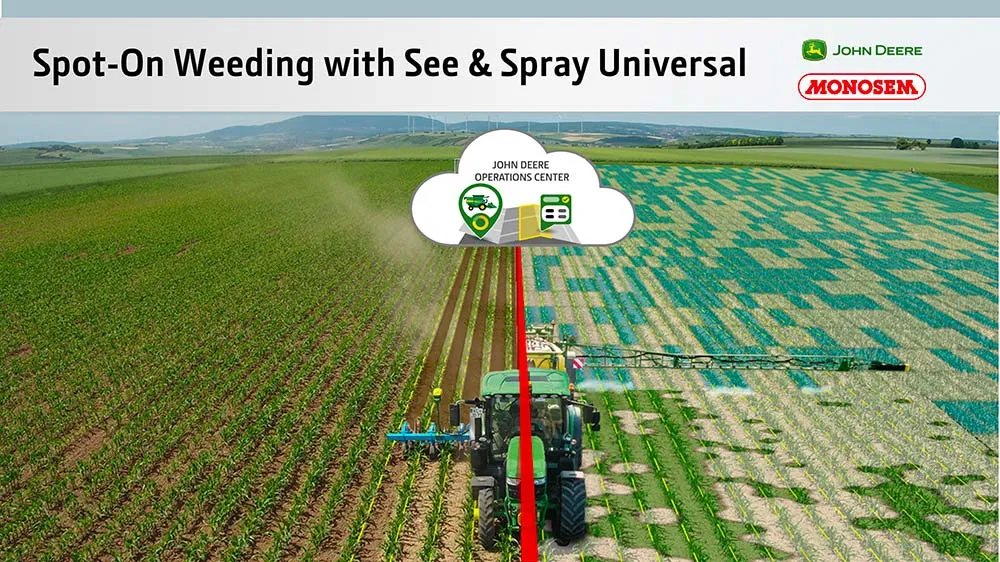 Le système Spot-On Weeding combine une détection en temps réel des adventices et un guidage de l’outil. Il permet ainsi une pulvérisation localisée ainsi qu’un binage au plus près du rang.