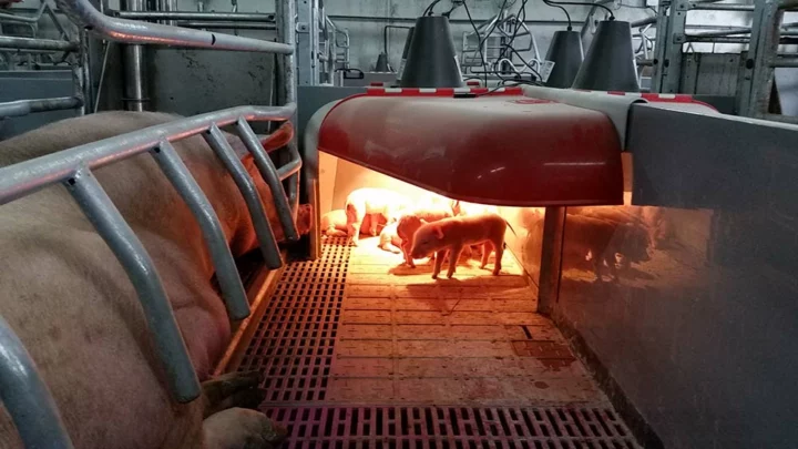 Que ce soit en post-sevrage (PS) ou en maternité, la localisation du chauffage permet de limiter la zone de chauffage à une partie restreinte. Tous les éleveurs ayant mis en place des systèmes avec niches sont unanimes : ils chauffent moins (nombre de kWh dépensés/porc) et mieux. Les niches permettent aussi de gérer des besoins hétérogènes entre différents animaux ; une température élevée pour les porcelets qui reste fraîche pour les truies. La lampe ‘Dans le nid’ est équipée d’un capteur infrarouge qui va mesurer la température corporelle des porcelets. Comparé aux paramétrages enregistrés, l’automatisme va donc délivrer la puissance nécessaire et donc s’adapter aux besoins des porcelets. Une économie de 70 % de dépenses électriques a été constatée par rapport aux références Ifip et de 60 % par rapport à un système classique en contemporain. Cela représente plus de 5 000 €/an pour 60 places de maternité ou près de 1,50 €/porcelet sorti de PS. Devant être associée à un capot (niche), la solution s’avère très intéressante d’un point de vue économie d’énergie.