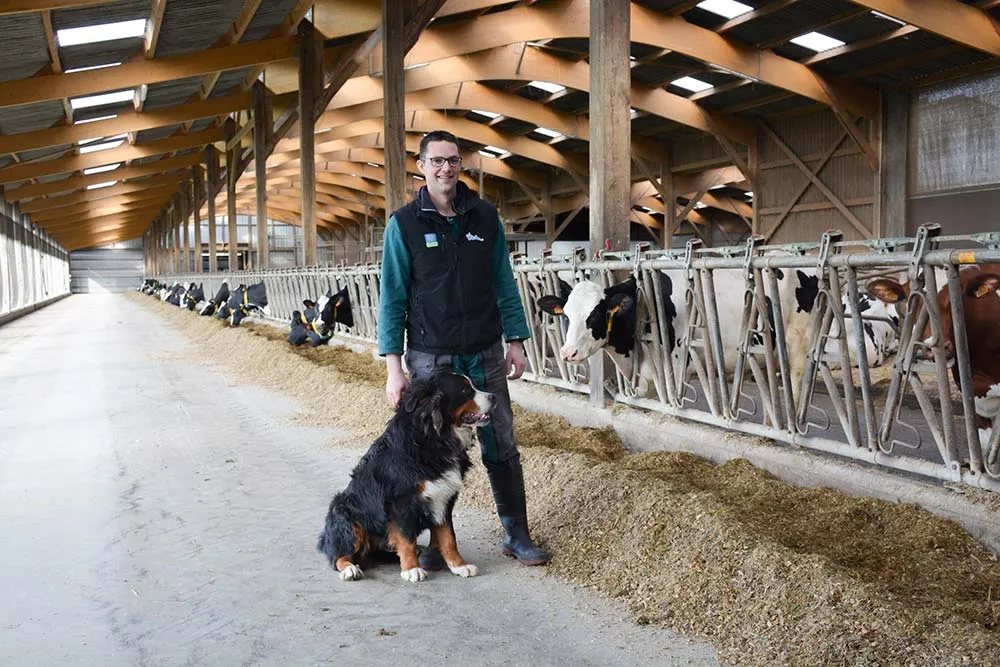 Sur l’élevage Lebouvier, les deux racleurs en V bidirectionnels fonctionnent sur des couloirs de plus de 100 m, entraînés par un seul moteur de 0,75 kW. Ils se déplient pour déverser le lisier dans un canal à lisier flottant au centre du bâtiment. 230 vaches laitières sont logées dans la stabulation du Gaec Lebouvier – La Métairie à Villebaudon (50) mise en service en septembre 2019. Accompagnés par l’entreprise Élevance pour la conception du bâtiment, les associés ont fait le choix de deux racleurs en V de marque GEA entre les logettes matelas (recouvertes de paille broyée). « Dans l’ancienne stabulation des laitières, nous avions un racleur hydraulique qui exigeait notre présence pour plus de sécurité à l’utilisation. Désormais, nous utilisons ces racleurs à corde qui fonctionnent avec un même moteur de 0,75 kW. C’est un système simple, robuste et moins consommateur d’énergie », témoigne Alexandre Lebouvier, associé depuis 2017 avec ses parents Benoît et Valérie (avec un apprenti). La moitié du tank à lait avec le groupe de refroidissement est à l’extérieur de la laiterie. En orange : le groupe électrogène. Pas de pompe pour le transfert du lisier Jusqu’à 8 fois par jour sur 24 heures (moins lors du pâturage), les racleurs avancent doucement sur le béton rainuré, s’arrêtant en cas d’obstacle. Ils sont munis de lames en uréthane. « Avoir un sol bien nettoyé est important pour la santé des pattes, la propreté des animaux et la réduction des émissions d’ammoniac dans la stabulation. » À la moitié du bâtiment qui mesure 108 m de longueur, le racleur s’ouvre et le lisier se déverse dans un tuyau enterré de 60 cm. Il flotte sur l’eau jusqu’à la fosse à lisier en contrebas, sans besoin de pompe. Deux seuils d’environ 30 cm permettent de maintenir un niveau constant d’eau dans le tuyau. « Le racleur est ensuite tiré et se…