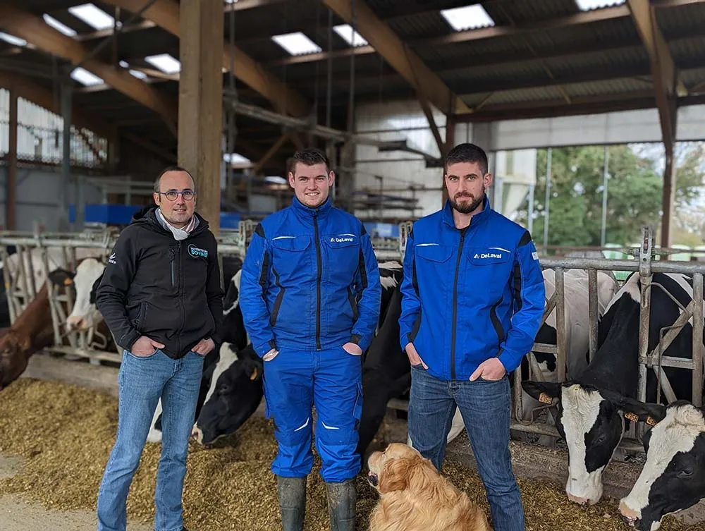 Thomas et Anthony Bourel se sont respectivement installés en 2019 et 2022, avec leurs parents, sur le Gaec familial éponyme à Plouigneau (29). Ils ont été accompagnés par la coopérative Eureden. Récit d’un projet raisonné, qui a de l’avenir. Thomas et Anthony Bourel, frères et associés, ont suivi, à peu près, le même parcours avant de s’installer sur la ferme familiale, qui aujourd’hui en est à la 4e génération. Depuis l’installation de Jean-Yves, le père, en 1995, puis Lydie, la mère, en 1998, la ferme a bien évolué et est passée de 70 vaches à 250 vaches avec 5 associés. Les deux premiers robots ont été installés en 2014. « On a investi dans notre ferme car il y avait de l’avenir avec l’installation de nos enfants, raconte Lydie. Et d’ajouter : « Leur petit frère, Fabien, suit le même parcours avec la même envie et ambition. C’est motivant et stimulant. » Une installation bien cadrée Après un BTS ACSE (Analyse, conduite et stratégie de l’entreprise agricole) à Pommerit, Thomas a été salarié pendant trois ans sur une ferme laitière avec robot et un système similaire, à Plougonven au Gaec Cadiou Quéguiner. Anthony, quant à lui, a travaillé pendant un an en tant que chauffeur après son BTS. Ensuite, son installation s’est faite sur la ferme voisine de Patrick Réguer. L’objectif était pour cet éleveur d’anticiper la transmission de son bien avant son départ en retraite et, pour Anthony, de s’installer sur une exploitation déjà existante. Pour leurs installations, Anthony et Thomas n’ont pas hésité à se faire accompagner avant de s’associer tous ensemble dans le Gaec. Ils étaient également bien entourés et suivis sur le plan technique avec leur technicien nutrition bovine Eureden, Raphaël Rivoalen. « Raphaël, par le biais de la coopérative, nous a bien soutenus, un vrai lien de confiance s’est créé »,…