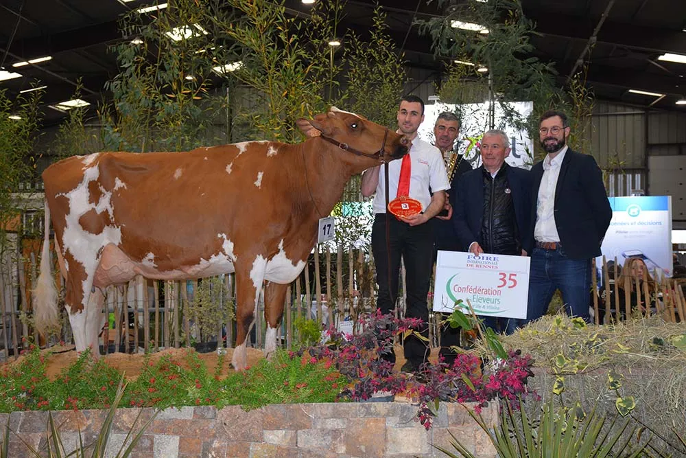 Pour les génisses, c’est Royale (qualifiée RJ, reproductrice jeune) appartenant au Gaec de la Yardais, à Plélan-le-Grand, qui a gagné le prix de championnat. Âgée de 2 ans et 6 mois, elle était « la plus complète » pour les juges qui ont évoqué ses qualités de bassin et ses aplombs. C’est une fille de Jogging (RQM, reproducteur confirmé qualités maternelles).