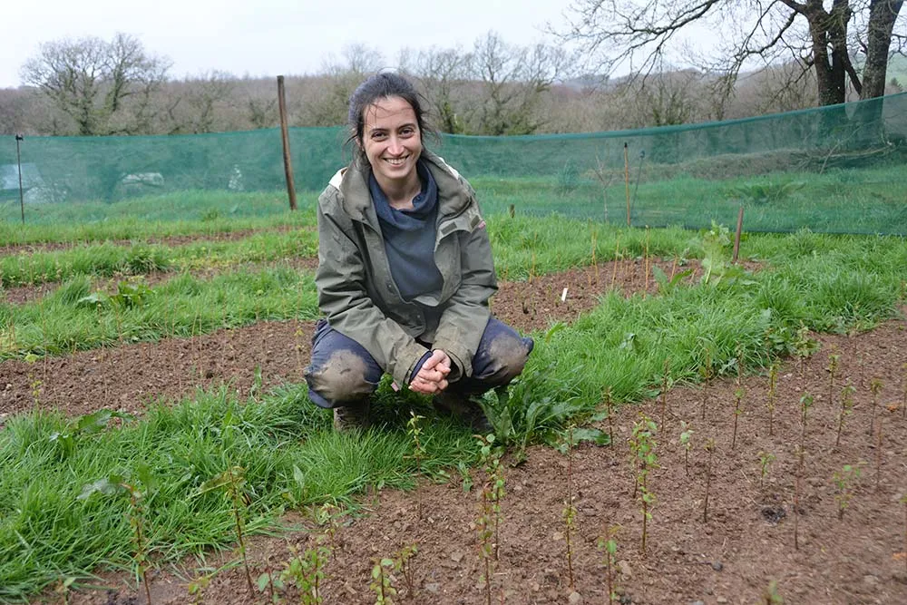 Juliet Abadie cultive la génétique diversifiée des arbres et arbustes de Bretagne. Dans sa pépinière, elle élève des jeunes plants sauvages et locaux qui serviront à garnir des talus, des haies, des champs.