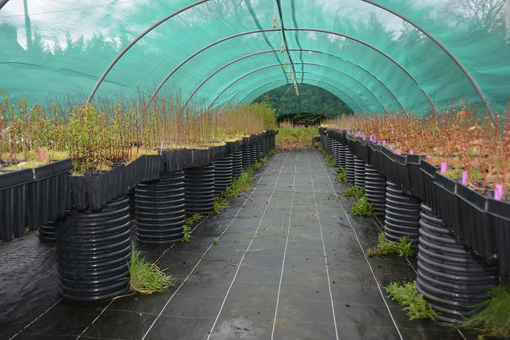 Dans la conduite de ses plants biologiques, la spécialiste des arbres essaie d’être « la moins agressive possible au niveau du sol. Je ne laboure pas, mais j’utilise la campagnole ». Cet outil à contre-dents fixes utilisé en maraîchage sert à briser les mottes. Côté fertilisation, les futurs grands végétaux sont élevés à la dure et habitués à des conditions peu favorables. « Ils sont voués à être plantés dans des haies ou sur des vieux talus drainant parfois pauvres, il faut qu’ils soient armés ! » Du purin de prêle est utilisé avec parcimonie pour éviter la fonte des semis, tout comme des décoctions d’ail. Les cosses de sarrasin servent à lutter contre les limaces. Un paillage naturel vient contrer les pousses d’adventices.