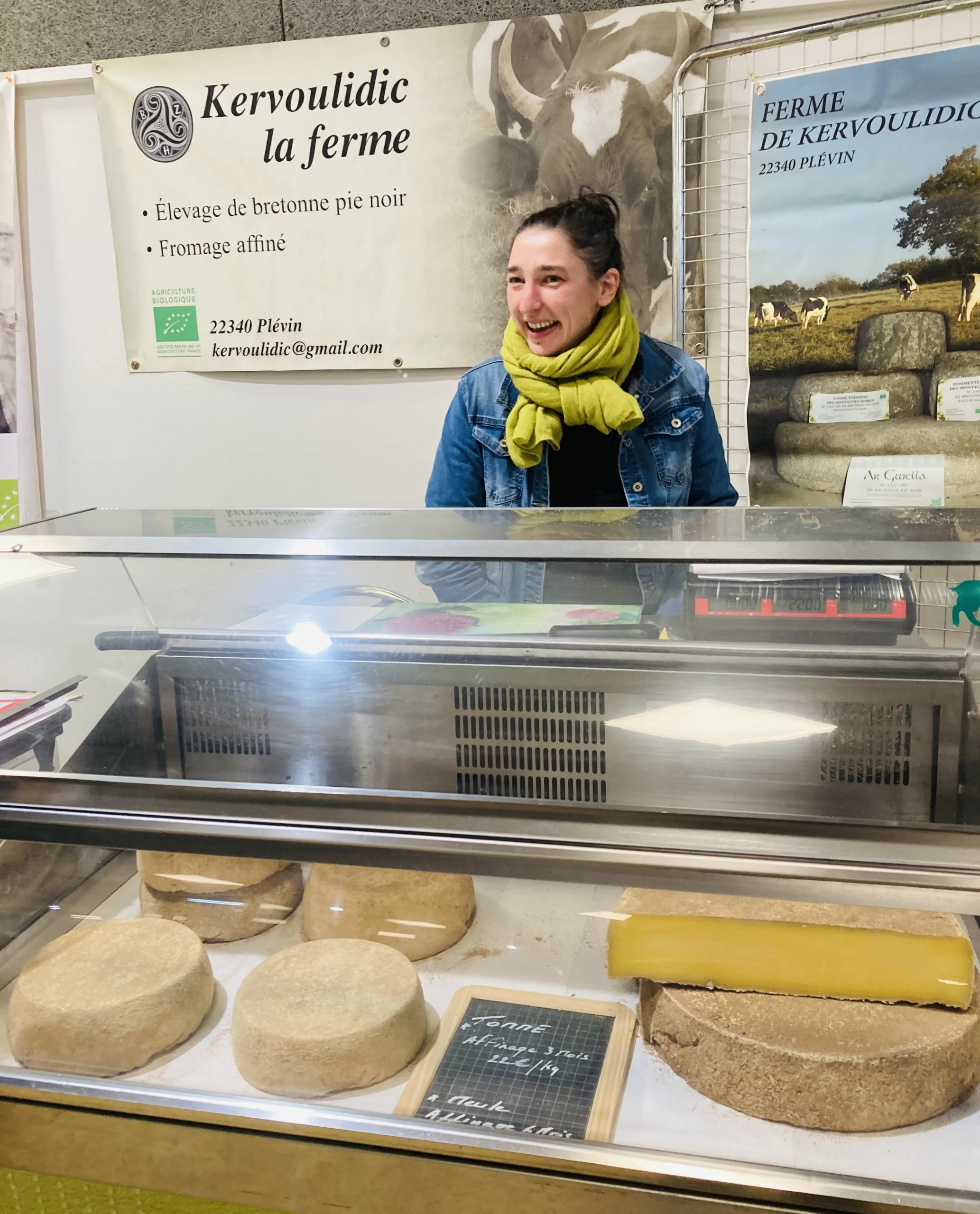 « Je fais ensuite des grains avec un tranche-caillé, je brasse et j’augmente progressivement la température pour assécher le grain avant la mise en moules. Le salage manuel est préféré à la saumure ce qui me permet de mieux gérer le taux de sel dans mes tommes. » Le couple produit ses fromages au lait entier et cru ce qui leur donne plus de goût, de crémeux et d’onctuosité. Cette tomme fermière des Montagnes noires est déclinée en tommette mais aussi en meule. Les producteurs fabriquent aussi un fromage à raclette et vont prochainement diversifier la gamme en proposant un reblochon qui a un meilleur rendement et un affinage plus court. Stéphane Martinez se charge de la commercialisation lors des marchés de Spézet le vendredi soir et de Carhaix le samedi matin. Il effectue aussi les livraisons chez les clients professionnels : restaurants, crêpiers, crémiers, traiteurs, magasins spécialisés en agriculture biologique… Le bouche à oreille a tellement bien fonctionné que les producteurs n’ont pas eu besoin de démarcher cette clientèle de professionnels qui est venue naturellement vers eux.