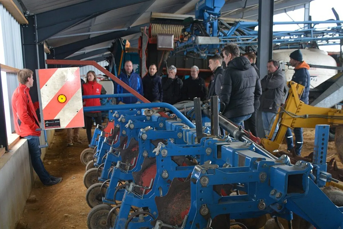 Les participants à la formation ont découvert le matériel de désherbage mécanique de la Cuma Fusion rémoise.
