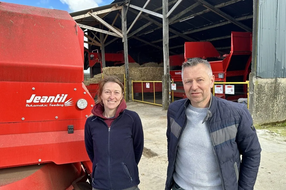 Caroline et Jean-Pierre Pinsault élèvent 150 mères charolaises et toute la suite sur leur site de Gevezé. Le Gaec frère/sœur possède également un atelier taurillons, un atelier d’engraissement de porcs ainsi qu’un atelier laitier sur un autre site. Un salarié travaille sur la ferme depuis 2014.Depuis janvier 2024, l’exploitation est équipée du robot d’alimentation Jeantil Automatic Feeding. « Nous étions équipés auparavant d’un bol mélangeur », raconte Jean-Pierre Pinsault. « Nous avions la possibilité d’investir, et je ne me voyais pas continuer sur ce rythme pendant 15 ans. C’est-à-dire jusqu’à ma retraite. L’alimentation est un poste très chronophage, surtout en vaches allaitantes ». Après avoir envisagé d’embaucher un deuxième salarié, les éleveurs ont fait le choix de l’automatisation, notamment en raison de la difficulté à recruter de la main-d’œuvre. L’investissement a été de 300 000 €.