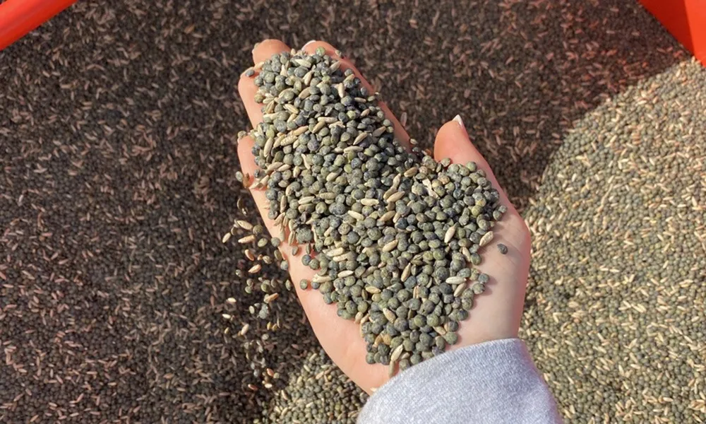 « L’objectif est d’obtenir une parcelle propre et facile à récolter, avec une lentille pas trop basse et pas trop de cailloux. » Aussi, pour maximiser les chances de réussite, le choix de la parcelle est important, disposant d’un pH >6,2 pour que les rhizomes puissent s’installer. Le semis s’effectue entre le 15 mars et le 15 avril avec un semoir monograine classique sur une terre légère, à 3 cm de profondeur. « Si les recommandations tablent sur une densité de 300-350 graines/m2, en association avec de l’orge, nous avons sécurisé l’essai à 350 gr/m2 avec du seigle et de la moutarde, pour leur rôle de tuteur et de recouvrement du sol. Cette année, nous testons différentes densités de semis », explique la future ingénieure.