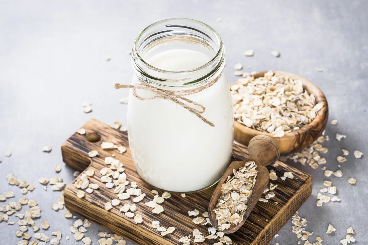 Un verre de lait végétal et des céréales - Illustration Une éthique de la consommation émerge