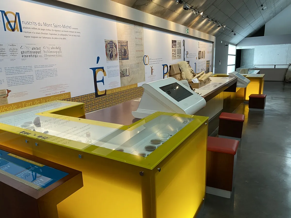 Ouvert en août 2006, le Scriptorial est situé à l’abri des remparts de la ville d’Avranches. Son objectif est de valoriser et faire découvrir l’exceptionnelle collection des manuscrits de l’ancienne abbaye du Mont-Saint-Michel. La muséographie du Scriptorial offre un parcours chronologique et thématique dont l’aboutissement est la découverte des manuscrits originaux présentés dans le cœur du bâtiment appelé ‘le Trésor’. « Les livres sont exposés en alternance, pour ne pas être abîmés. Après trois mois d’exposition, suivent trois ans de repos », explique Bérengère Jehan, directrice des musées et du patrimoine à Avranches.