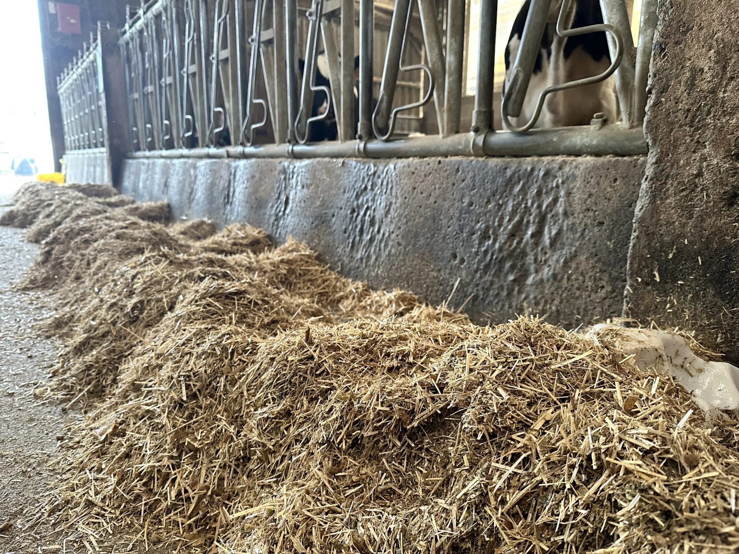 Chaque jour, Antoine Boixière place cinq big ballers sur le plateau de stockage. La paille est ensuite démêlée par deux vis sans fin, défibrée à travers une grille de 26 mm, puis dépoussiérée. À la sortie du circuit, les brins mesurent entre 0,5 et 2 cm en moyenne. « Cela améliore considérablement son pouvoir absorbant », souligne-t-il. « Les vaches restent globalement propres. » Le paillage, diffus et silencieux, ne perturbe pas les animaux présents dans le bâtiment. De plus, la paille courte est devenue plus appétente. « Les jeunes animaux l’ingèrent plus facilement, et elle stimule davantage leur rumen. Grâce à cela, nous avons réduit l’âge au vêlage de deux mois, qui est désormais de 20 mois. » La paille destinée à l’alimentation dispose de son propre circuit de distribution qui l’achemine directement jusqu’à la cuisine du robot Vector. Enfin, l’entretien du système reste globalement faible, avec un prix d’entretien d’environ 500 €/an pour 1 000 tonnes utilisées.