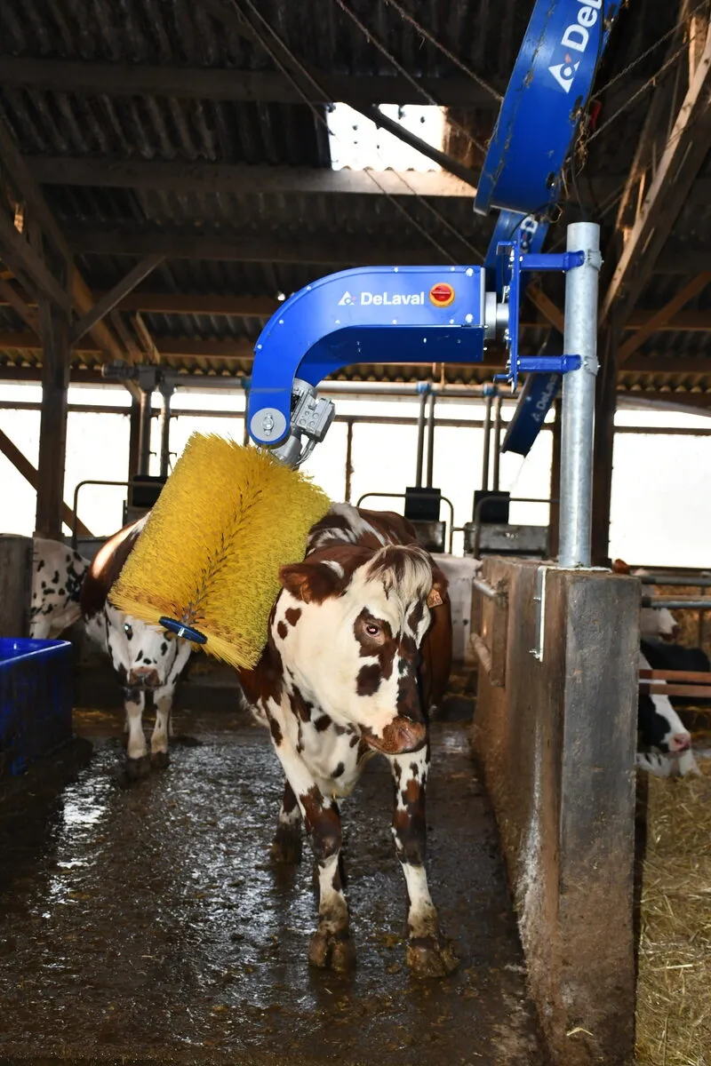 Autres investissements intervenus à la rénovation des lieux, sept ventilateurs orientés en direction des zones de couchage permettent de chasser l’humidité et de rafraîchir les bovins l’été. « Ils se déclenchent automatiquement grâce à une sonde mesurant la température et le taux d’humidité. » Deux brosses rotatives contribuent aussi au bien-être des animaux. Quatre stations Dac complètent l’alimentation des vaches. « Le sanitaire est bien maîtrisé dans nos bâtiments, le nombre de mammites a chuté d’une quinzaine à 3-4 par an », apprécient les éleveurs.