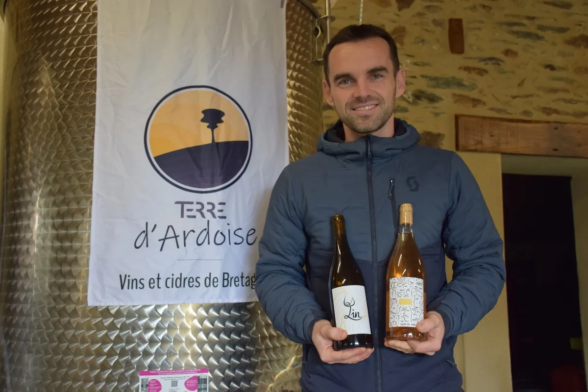 Fin 2020, à l’issue de sa formation, une opportunité se présente. « Mon beau-père, qui était agriculteur à Merléac, partait en retraite et cédait son exploitation. Lors d’une discussion, il a évoqué une parcelle orientée au sud, avec une terre peu profonde. Je suis venu voir et j’ai découvert que la roche-mère était composée d’ardoises, comme en Anjou ». La perspective de partir d’une feuille blanche séduit le néo-vigneron. Il rachète 10 hectares de terres, plante, en deux vagues, quelque 15 500 pieds de vigne (2 hectares de Chenin et de Pinot noir, 1,5 hectare de Gewurztraminer et de Pinot meunier) et entame sa conversion à l’agriculture biologique. Réalisée en 2023, la première récolte donne naissance à 2 200 bouteilles. Un stock écoulé en quelques semaines, ce qui confirme la demande pour un vin biologique, produit localement, en Bretagne. L’année 2024, avec sa météo complexe, s’est, elle, révélée plus difficile. « La production de vin blanc a reculé de 40 %. Mais la récolte de pommes à cidre a été bonne », positive Julien Lefèvre qui possède également un verger de 250 pommiers.