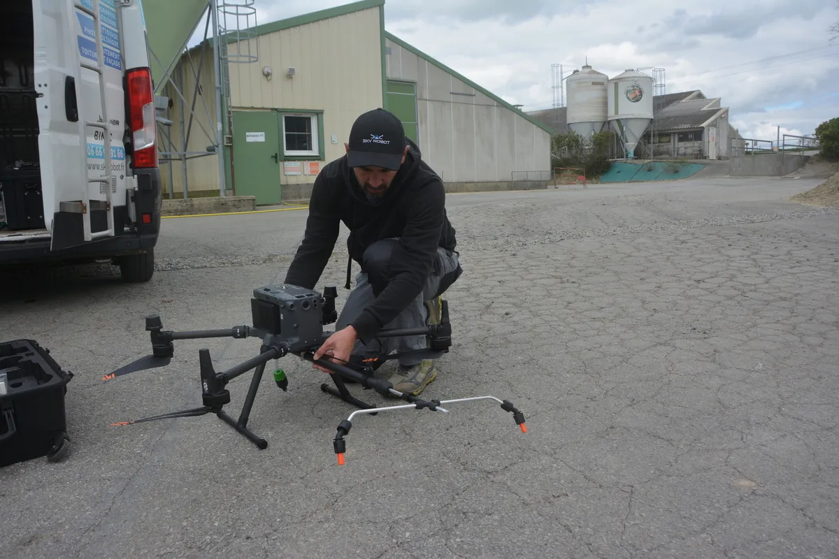 Mi-avril, l’agriculteur a sollicité les services de la société Skyrobot pour diagnostiquer puis nettoyer son installation. Cette entreprise commence par faire voler un drone pour une première inspection : une caméra thermique, montée sur l’engin volant, est capable de détecter instantanément les éventuels hotspots, points chauds dont l’origine peut être diverse mais qui cachent des dysfonctionnements, petits ou grands.