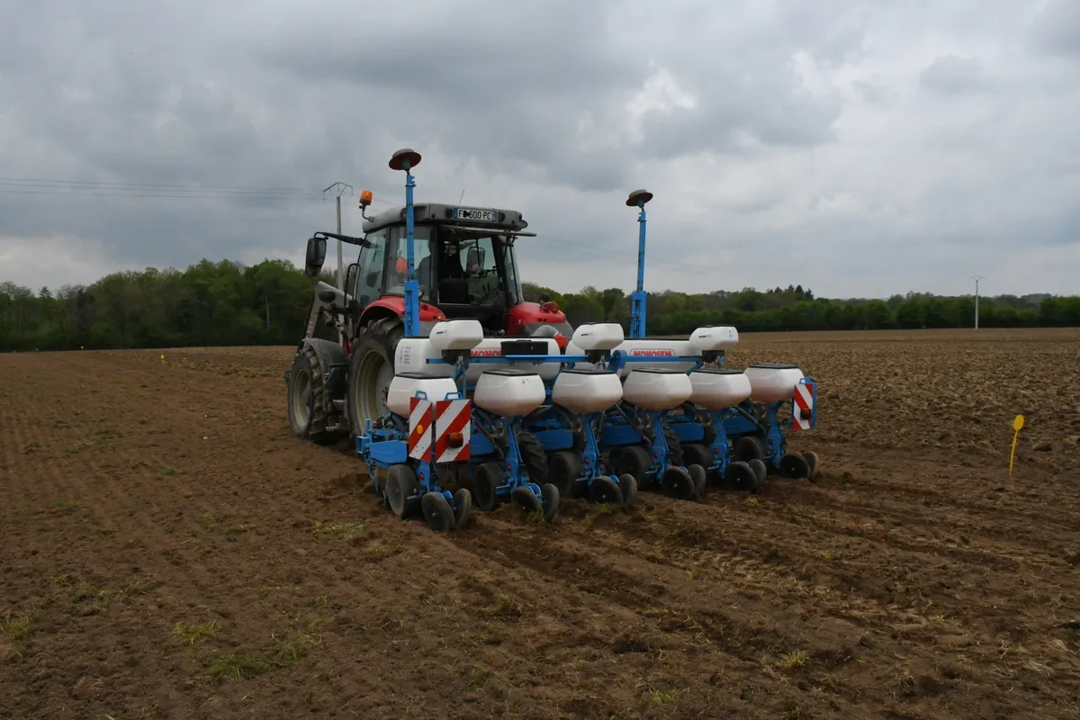 Il est par ailleurs indispensable de semer à une profondeur de 5 cm minimum et de rappuyer la ligne de semis. Un semis en terre réchauffée, souvent autour du 10 mai, permet une levée plus rapide du maïs. « Et semer sur une période sèche permettra d’assurer un premier désherbage mécanique de prélevée, à l’aveugle, avec une houe rotative à 16 km/h ou une herse étrille à 12 km/h », précise le technicien. Après la levée, la vitesse doit être réduite avec la herse étrille. « La bineuse intervient ensuite en inter-rang. Il est essentiel d’avoir le même nombre de rangs entre le semoir et la bineuse. »