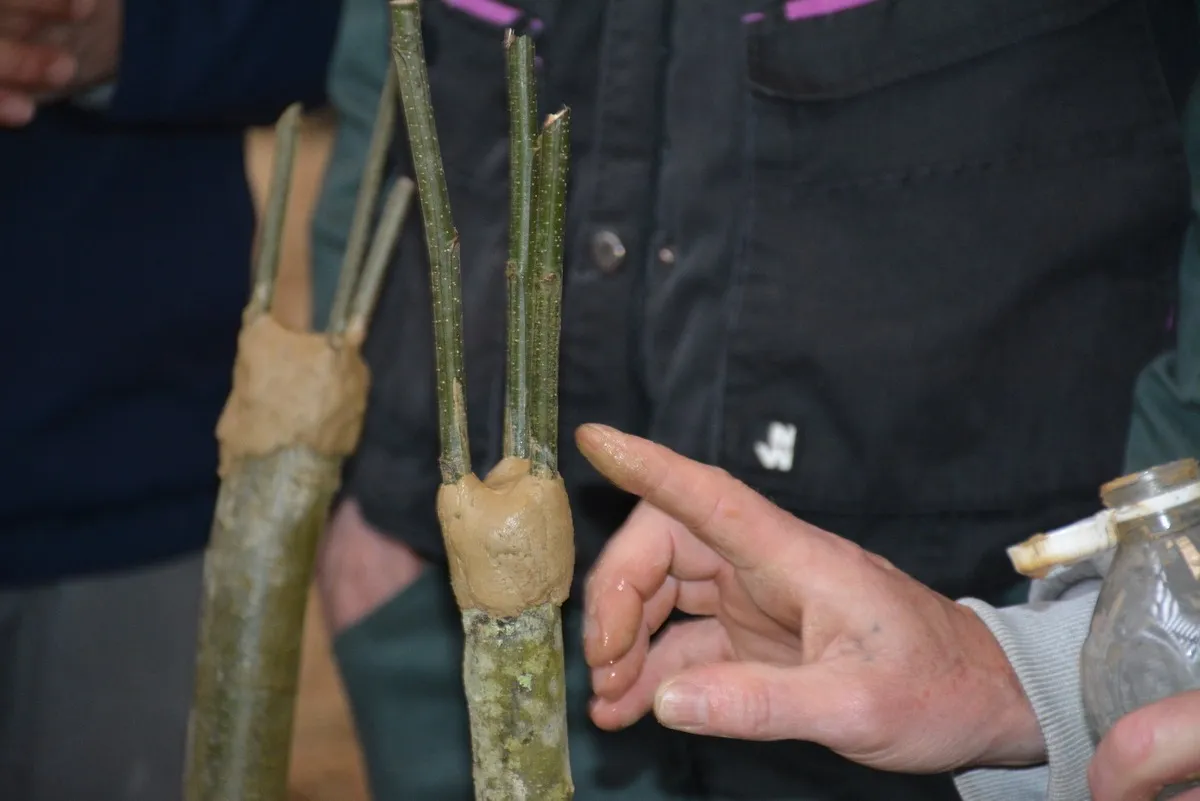 Au mois d’avril dernier, l’association a réalisé un atelier d’initiation au greffage sur la ferme de Pascale et Éric Lucas, à Limerzel. Sous la conduite de trois greffeurs locaux, la cinquantaine de participants ont découvert la greffe en couronne le matin, qui peut « s’appliquer sur toutes les espèces, pour des arbres allant de la taille d’un goulot jusqu’au cul d’une bouteille », puis, dans l’après-midi, la greffe anglaise, qui consiste à assembler le greffon et le porte-greffe à l’aide d’une entaille en biseau. Les châtaigniers sauvages d’une jeune haie bocagère de cinq ans ont servi de support à la démonstration. Les premières récoltes se feront dans cinq ans. « On profite de ce que les anciens ont planté », indiquait l’un des participants, inquiet du manque de transmission d’un savoir-faire ancestral. « Nous, aussi, on doit contribuer pour les générations futures ». En créant des vergers, en plantant des haies et en sachant les valoriser.