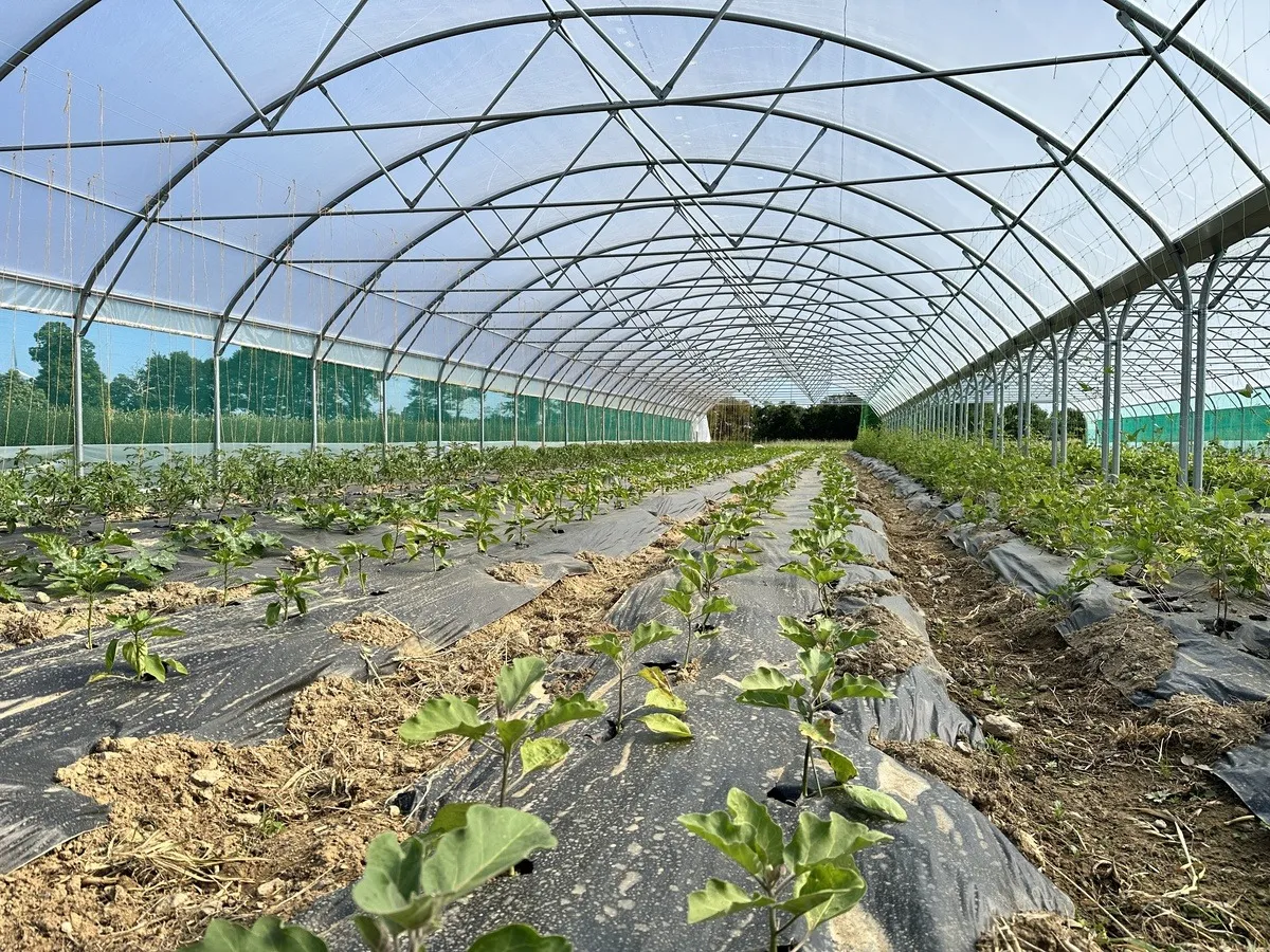 « Pour la partie agricole, nous nous sommes installés à trois dans un Gaec », raconte David Lorant, responsable du maraîchage. « Nous visons la polyvalence, tout en ayant des référents qualifiés sur les différents pôles. » 2,5 ha, dont 2 000 m2 de tunnels, sont consacrés au maraîchage diversifié sur sol vivant. Les premières plantations des légumes d’été ont été effectuées en mai dernier : tomates, courgettes, concombres ou autres poivrons. Camille Josset s’occupe quant à lui du troupeau de 30 vaches laitières (Pie Rouge et Montbéliardes) qui entrera en production à l’automne. Les bovins sont élevés sur un système exclusivement herbager tirant avantage des 40 ha de prairies accessibles autour des bâtiments. « Notre objectif est de produire 140 000 litres, d’en transformer 90 000 litres et de vendre le reste à Biolait », affirme le maraîcher.