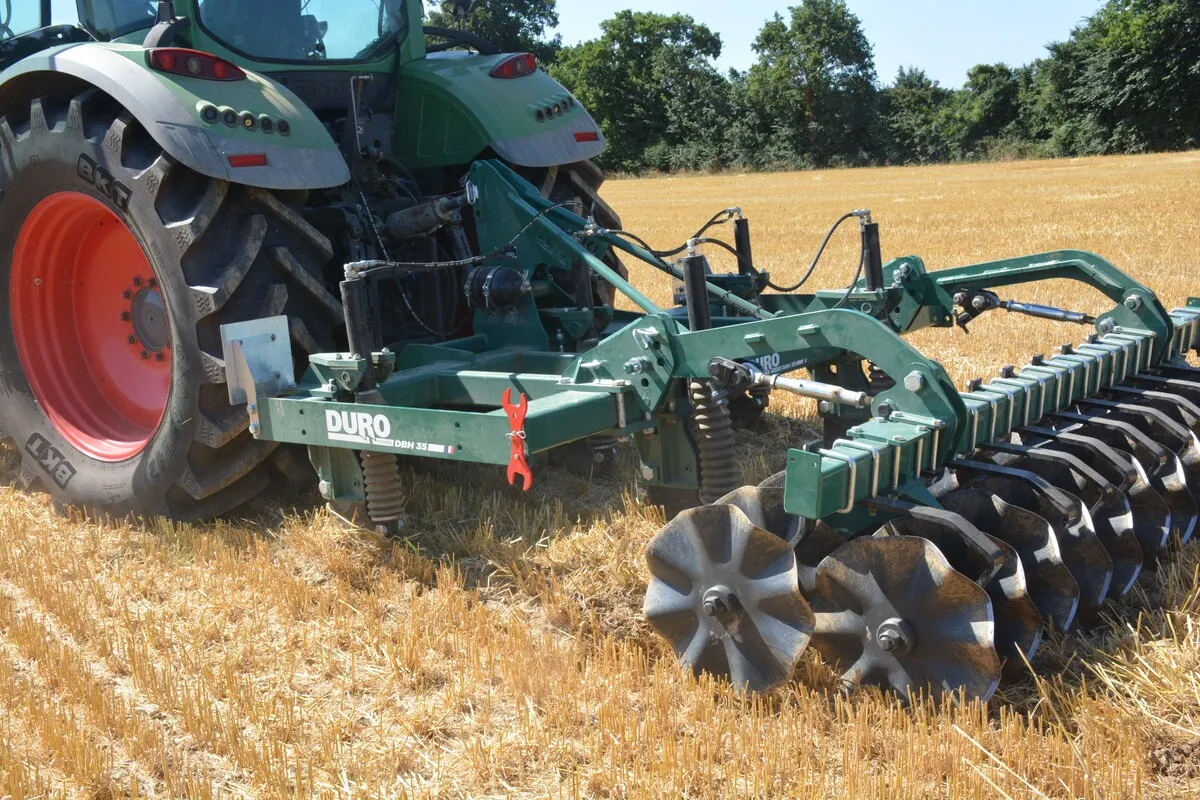 Le modèle Duro présenté ce jour-là est équipé de dents droites progressives. Un choix qui limite le bouleversement des horizons du sol et empêche la terre fine de descendre en profondeur. Lors de la démonstration, le travail s’est effectué à 5 km/h, sur une profondeur de 26 à 30 cm. L’outil, avec un bon dégagement, peut aussi intervenir sur un couvert déjà levé de 10 à 15 cm, mais pour oxygéner efficacement le sol, mieux vaut le faire le plus tôt possible pour que le couvert ait suffisamment de vigueur pour repartir.