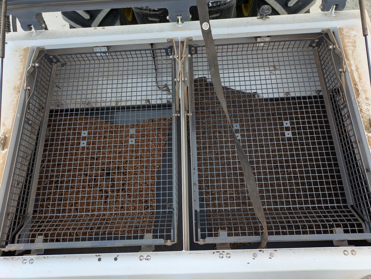 Cette année, Pierre Colas s’est séparé de ses deux semoirs pour les remplacer par deux ensembles à trémie frontale. Il est resté fidèle au même constructeur qui a entre-temps changé de nom. La trémie Sky Progress TF dispose de deux compartiments de 1 100 litres. « Comme j’utilisais très peu la troisième trémie de mes précédents appareils, je me suis contenté de deux cuves, tout en sachant qu’il sera possible de monter une troisième trémie a posteriori, si de nouvelles pratiques la rendent nécessaire. »