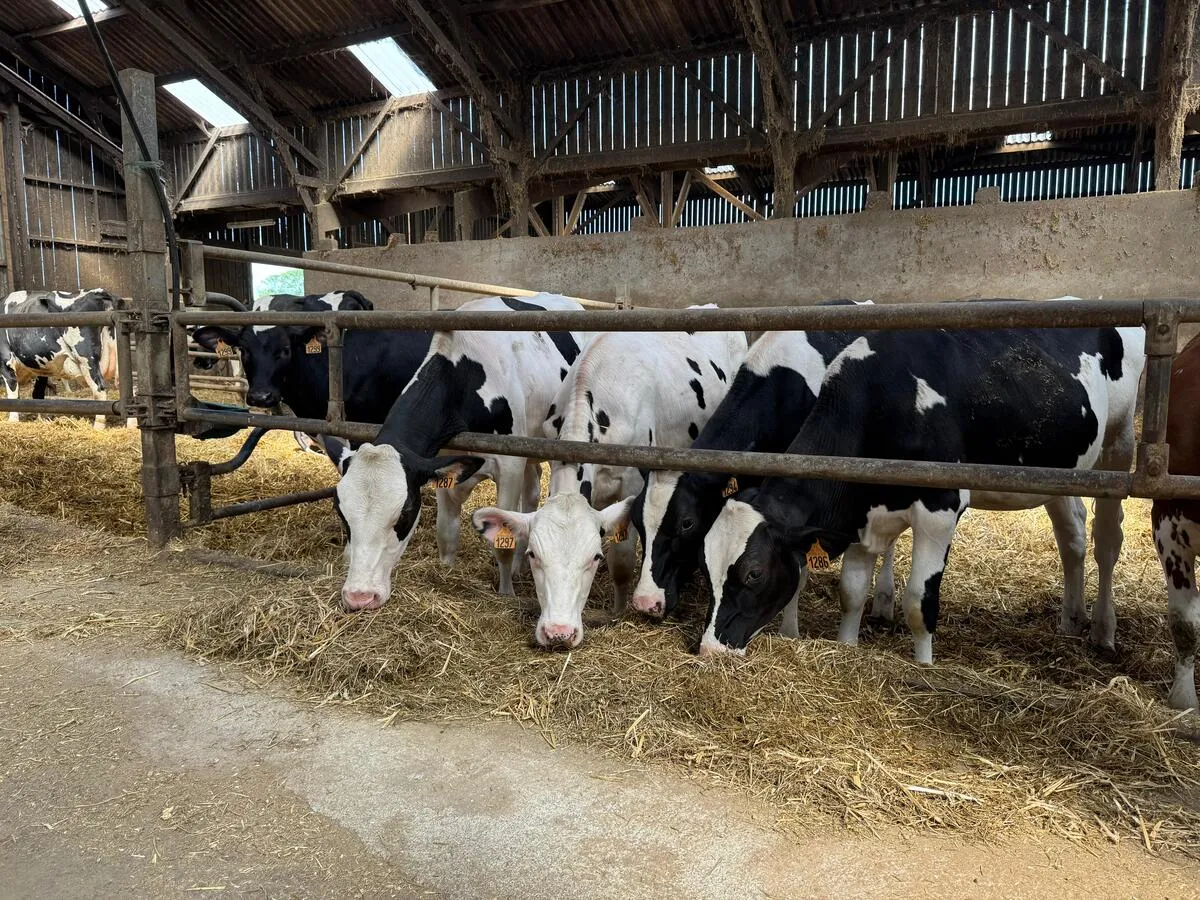 Caroline Marsaud et Tanguy Cueff se sont installés le 1er octobre 2024. Leurs cédants conduisaient 140-150 vaches pour livrer 1,3 million de litres de lait par campagne. Leur arrivée a été l’occasion de changer de crémerie pour approvisionner l’entreprise Waouh à Plouédern, bien connue pour ses crêpes. « Nous avons un contrat d’un million de litres, plus ou moins 10 %. Le troupeau a donc été réduit à 100 -110 vaches. Cette baisse d’effectif donne de la souplesse au niveau des infrastructures et désormais génisses et taries sont élevées sur le site principal. »