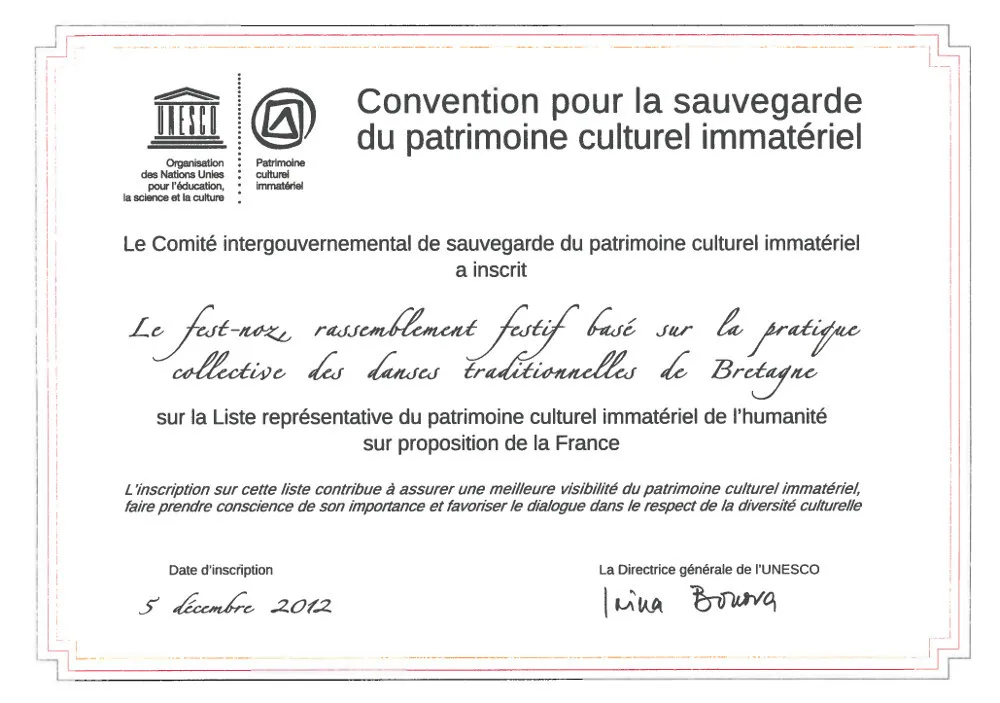 Aujourd’hui, le fest-noz ne relève plus de la nostalgie. Bien au contraire : il s’inscrit dans la modernité en attirant un public varié, mêlant toutes les générations et toutes les classes sociales. Les danses traditionnelles, toujours collectives, permettent ce lien intergénérationnel unique. La reconnaissance est d’ailleurs officielle : en 2012, l’Unesco inscrit le fest-noz au patrimoine culturel immatériel de l’humanité.