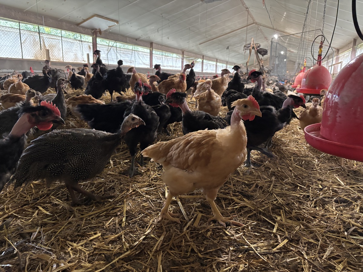 Dans les poulaillers, les poulets représentent la majorité de l’élevage, aux côtés de pintades. Pour les fêtes de fin d’année, des chapons et des poulardes viennent compléter la basse-cour. « Nous avons cessé d’élever des canards, des oies et des dindes, qui nous demandaient trop de temps ». Désormais, ce sont 7 bâtiments plein air (soit 3 000 m2 au total), disposant de parcours, qui équipent la ferme.