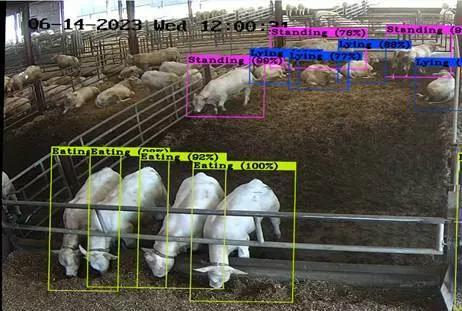 Le projet Bebop quant à lui se termine. Des essais ont été faits par France Limousin Sélection et à la ferme expérimentale des Établières. La poursuite du projet est en cours de discussion. « Il a permis, grâce à l’IA, la détection de comportements des jeunes bovins en engraissement : un stade de production qui comporte actuellement peu de données au niveau du bien-être. » La détection par l’IA de ces situations a été possible dans des cases d’engraissement : bovin couché ou en train de se coucher, debout ou en train de se lever, ingérer, boire et se déplacer. « Analyser ces comportements en continu pourrait apporter une aide à la surveillance à l’éleveur qui ne peut pas rester toute la journée devant la case. » Cela pourrait l’alerter sur des durées trop longues de couchage par exemple, ou un manque d’alimentation. « Le suivi individuel des animaux n’est par contre pas encore possible et l’IA, si elle peut aider à détecter un problème, ne peut pas en trouver la cause. Pour aller plus loin, ce type de démarche avec caméra et IA pourrait être utilisée pour la détection de toux qui se repèrent facilement et dont l’enjeu est majeur en élevage de jeunes bovins. »
