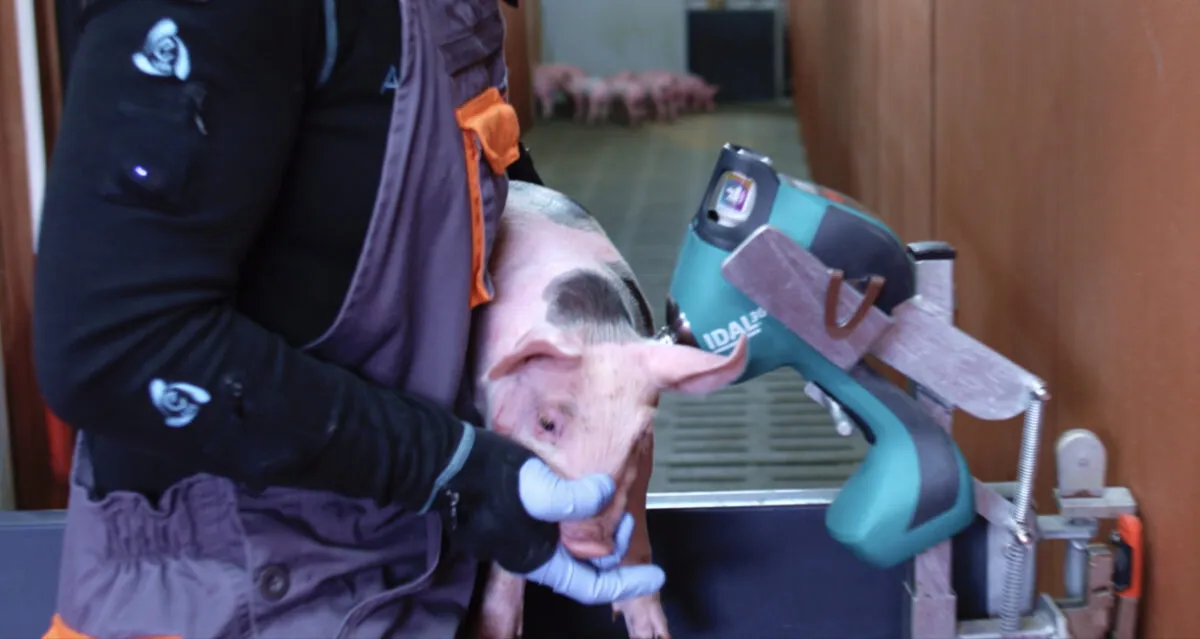 En juillet 2025, une nouvelle série de tests a été réalisée pour évaluer l’impact de l’utilisation du porte-IDAL, un support permettant de fixer les IDAL® à hauteur d’homme et de s’adapter facilement aux différentes configurations des élevages porcins. Ce dispositif, actionnable via une pédale, libère les mains du vaccinateur, facilite la manipulation des porcelets et améliore l’ergonomie du geste.