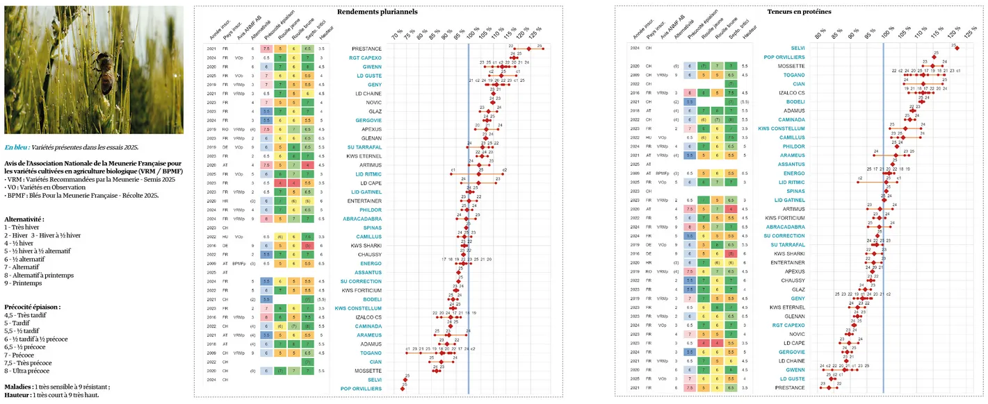Télécharger la synthèse des rendements pluriannuels et des teneurs en protéines des variétés de blé biologique des résultats d’essais. : Cliquer ici