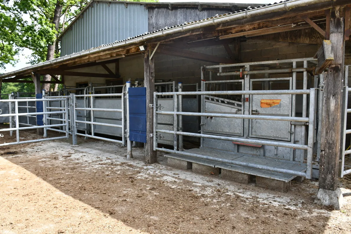 Les manipulations des bovins sont facilitées par un parc de contention complet avec une installation en demi-lune et barrière poussante. Un couloir avec marche-pied et partie amovible en haut facilite l’intervention sur le dessus des animaux. « La cage de pesée permet aussi de réaliser les parages. »