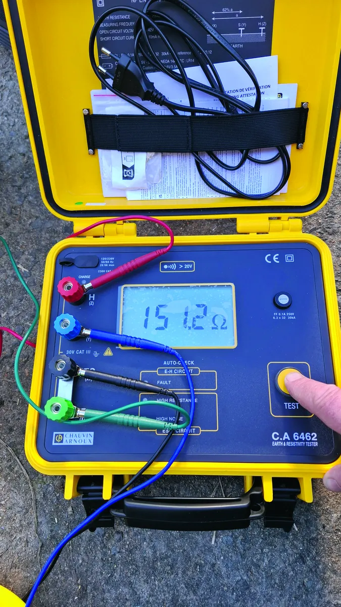 « Se tromper d’endroit pour la prise de terre peut coûter cher en termes d’impact sur les animaux et de mise en œuvre de travaux pour résoudre le problème », rapporte Daniel Le Clainche qui regrette qu’elle soit souvent placée « au pifomètre ». Pourtant, dans un projet neuf, une fois que le plan et l’emplacement du bâtiment validés, on peut travailler sur le positionnement de la prise de terre. « Et peut-être profiter du terrassier pour préparer une tranchée adaptée. » D’ailleurs, c’est nouveau, les conseillers spécialisés d’Innoval proposent désormais d’intervenir en amont des constructions pour produire la mesure de résistivité et la cartographie pour s’assurer de choisir le bon endroit. « La connaissance de la résistivité du sol dans chaque couche du sous-sol permet de choisir le système de mise à la terre le plus approprié pour obtenir la valeur de résistance souhaitée et la plus grande sécurité. » La mesure est réalisée à l’aide d’un ohmmètre (méthode de Winner). La résistivité du sol doit être inférieure à 100 Ohms.mètres pour assurer une bonne valeur de la résistance de la prise de terre. « Les sols qui ont une résistivité qui se situe au-dessus nécessitent d’adapter la prise de terre en conséquence : davantage de longueur du fil de cuivre dans le sol, parfois on préconise des tranchées jusqu’à 20 m pour obtenir la résistance voulue. »