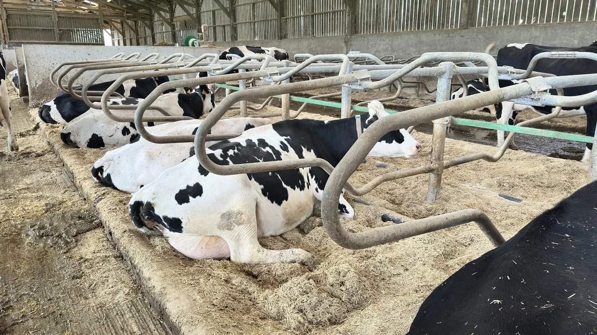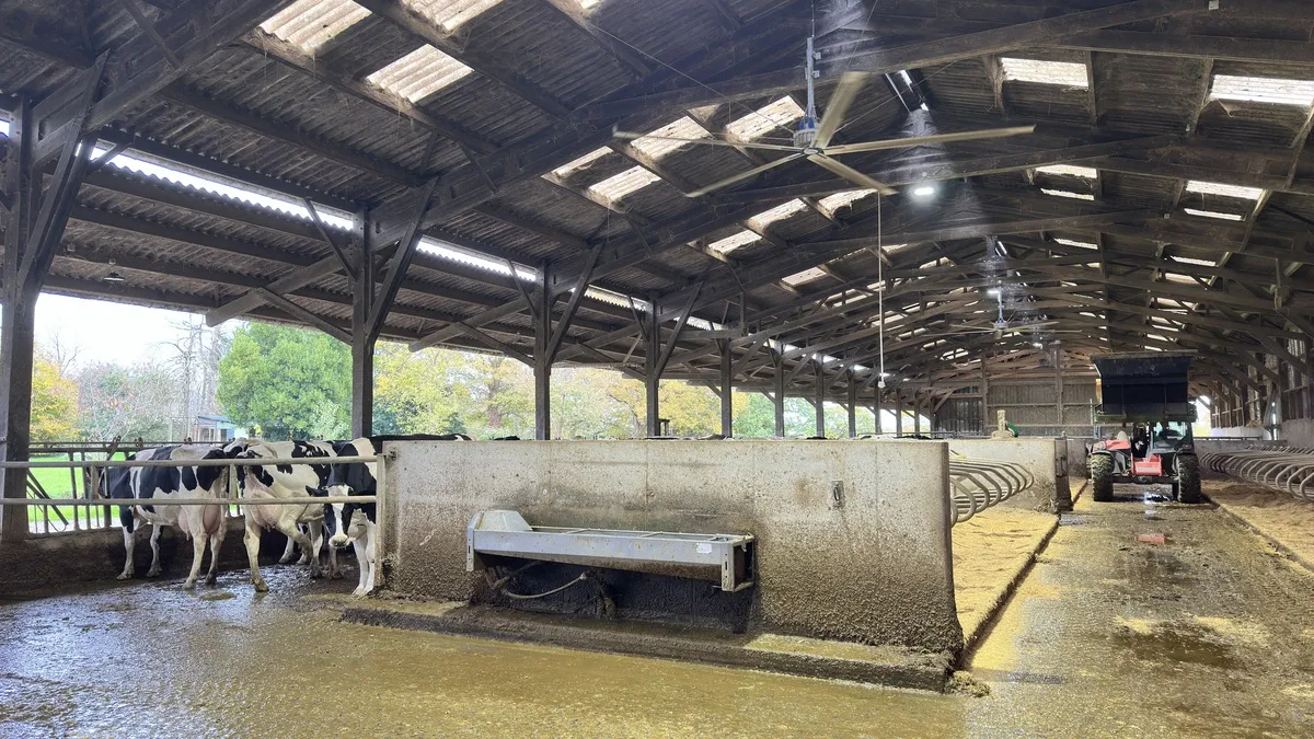 Pour faire face aux épisodes de chaleur de plus en plus fréquents, deux ventilateurs à pales horizontales ont été installés au printemps 2025. « Cet été, nous avons limité la perte de production », déclare Nicolas Harel. « On voyait que les vaches étaient plus à l’aise. Beaucoup restaient même couchées dans les logettes. » En hiver, la ventilation permet aussi d’évacuer l’humidité. Le bâtiment est ouvert côté auge, ce qui favorise la circulation de l’air et la luminosité. Enfin, les couloirs et l’aire d’exercice seront bientôt équipés de tapis pour remplacer le béton scarifié devenu glissant.