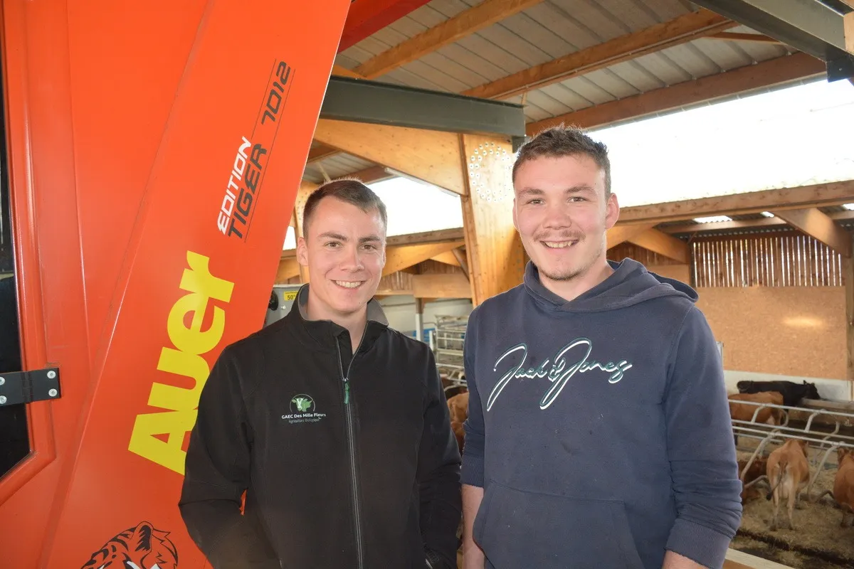 L’exploitation familiale a été convertie à l’agriculture biologique en 2012. Aujourd’hui, Thomas et Matthieu ont rejoint leurs parents Sylvie et Marcel Tuaux. Ensemble, ils conduisent 91 ha, dont 83 ha de prairies, pour une production de 430 000 L de lait bio livrés à la laiterie Olga à Noyal-sur-Vilaine. Le troupeau compte cent vaches mixtes, pâturant de février à décembre.