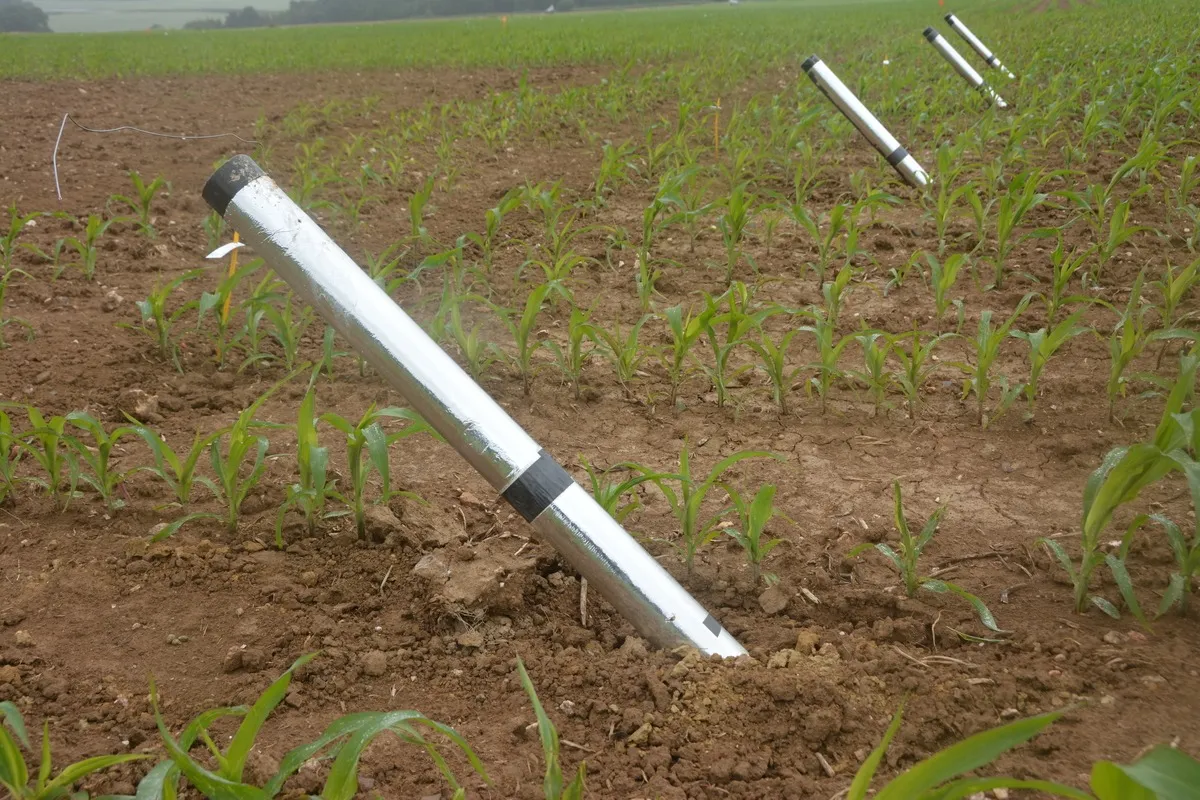 Après le semis du maïs, une foreuse est venue creuser le sol pour recevoir des tubes transparents de 2 m de long. Environ 70 cm restent en dehors du sol, ce qui signifie qu’une profondeur de sol d’1 m est prospectée. Ces tubes sont isolés pour éviter que la lumière et la chaleur ne perturbent le développement des racines, un bouchon empêche les infiltrations d’eau de pluie. Pour les mesures, un scanner rotatif est introduit pour imager les racines. À Ploërmel, les prises d’image ont été effectuées le 11 juin, puis les 3 et 22 juillet. Ces images, moulinées et traitées par un algorithme, permettent de mesurer la longueur et la densité des racines, ainsi que leurs diamètres.