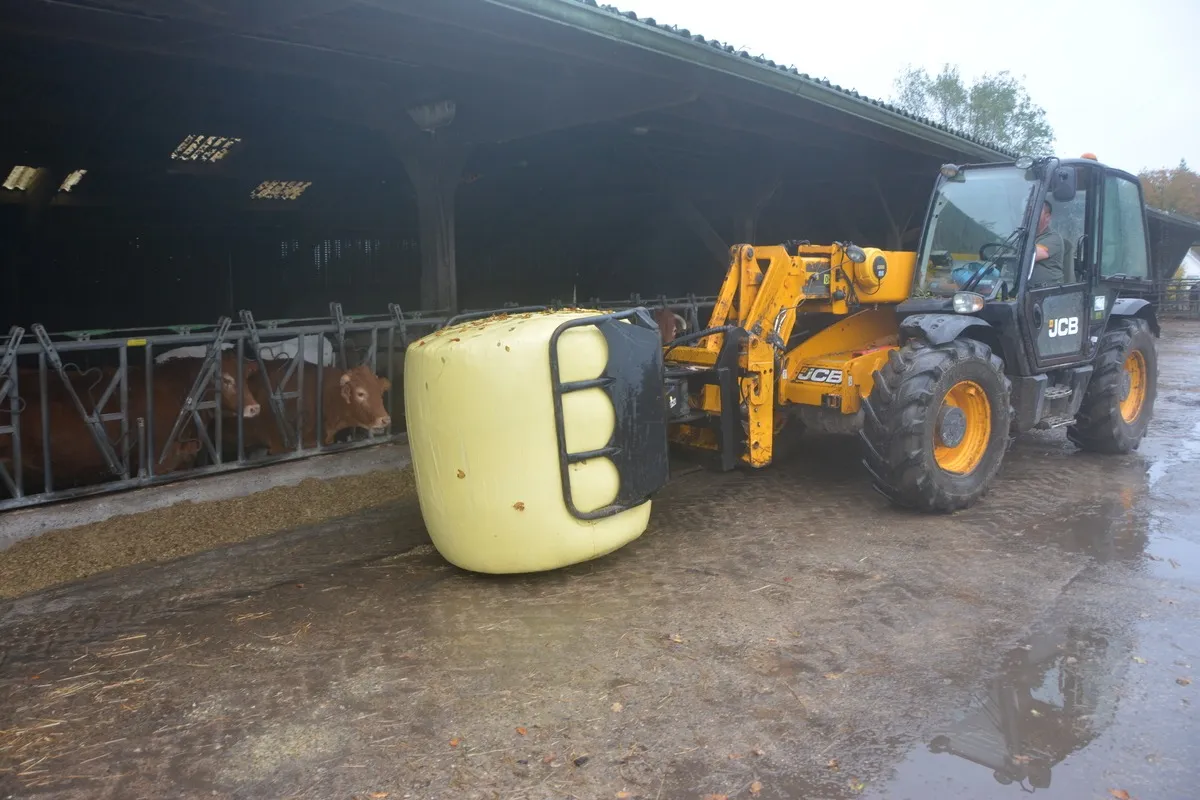La presse enrubaneuse de l’entreprise peut aussi bien recevoir des filets comme des films pour lier les bottes. « Nous utilisons ces films pour l’enrubannage d’herbe, encore plus en luzerne pour éviter que le film ne se perce ». Pour ces fourrages, 3 tours de films sont appliqués pour bien tenir la balle. Pour l’ensilage de maïs, « 7 tours de film ont été posés, par sécurité ». Puis, en film extérieur, 4 couches viennent fermer hermétiquement chaque botte. Ce mode de conservation garantit une préservation de la qualité optimale. Enrubanner son ensilage a un coût, « il faut compter entre 22 et 24 € par botte ». Pendant le chantier, « il suffisait d’un aller dans le silo de 40 m de long pour remplir l’outil et presser une balle. Il faut utiliser une machine à chambre fixe, ce n’est pas sûr que cela fonctionne sur une presse à chambre variable. Enfin, la mise en enrubannage est à réaliser le jour de l’ensilage et directement sur le tas, afin de gaver le pick-up. En 45 minutes, nous avons enrubanné 25 bottes de maïs, ce dernier affichait un taux de matière sèche de 35 % ».